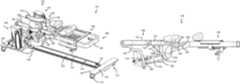 FIG. 9 is an isometric foot end view of the base assembly with the carriage assembly translated towards a head end of the base and pivoted relative to the carriage assembly.