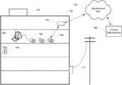 For simplicity, only temperature monitoring at the sites of thesmart thermostats140 and power consumption monitoring at the sites of the smart electricity monitors150 have been noted, however, the present invention also can incorporate other sources of sensory data. Examples include radiation monitors on windows, door monitors to indicate when doors are open or closed, additional temperature sensors within thebuilding100 and/or on the exterior, motion detectors, acoustic detectors, and so forth. These sources of sensory data share in common that they are able to report data wirelessly and digitally.