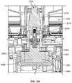FIG. 129 is similar to the sectional view ofFIG. 127, but with another alternative embodiment for coupling the hydrocyclonicparticle separator assembly804 to thepool cleaner body802. Specifically, instead of themale member2008 and thefemale member1102, the embodiment ofFIG. 129 includes arotor2474 extending from theshaft1078 and amotor stator2476 positioned within themotor box840. As shown inFIG. 129, therotor2474 can include arod2478 extending from theshaft1078 and acasing2480 attached to the end of therod2478. Thecasing2480 defines aninner chamber2482 and includes internalpermanent magnets2484. Thecasing2480 can extend from thelarge debris container858 of the hydrocyclonicparticle separator assembly804 and is configured to be placed over themotor stator2476 with themotor stator2476 placed within theinner chamber2482. Themotor stator2476 includes a plurality of electromagnets that are configured to interact with the internalpermanent magnets2484 of therotor2474 and rotationally drive therotor2474. When the hydrocyclonicparticle separator assembly804 is placed onto thepool cleaner body802 therotor2474 can extend through anenlarged opening2486 in the top2080 of themotor box840 and surround themotor stator2476. Power can be supplied to themotor stator2476 to energize the electromagnets and thus rotatably drive the casing2480 (and therefore the rotor2474) through electromagnetic interaction with thepermanent magnets2486. Accordingly, therotor2474 and themotor stator2476 together function as a brushless DC motor.