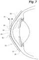 Referring particularly toFIG. 7, an embodiment of the invention including paralleltear shaping edge52 is depicted. It is noted thatlens body22 in the embodiment depicted inFIG. 7 that paralleltear shaping edge52 is generally parallel on opposing sides ofcentral opening26. Also depicted inFIG. 7 isconcave tear meniscus54.Concave tear meniscus54 affects a negative refractive power due to its concave shape and is expected to contribute focusing power for correction of myopia. It is expected that the concavity ofconcave tear meniscus54 will vary with the size ofcentral opening26 and with thedepth56 oftear shaping edge28.