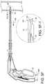 FIG. 2 is a partially exposed perspective view of thecannulation device20 ofFIG. 1. A portion of thehousing24 has been removed fromFIG. 2 in order to show the components of the device which were covered therein in this embodiment. Thetube26, which passes through theadjustment nut32, is coupled to anadapter34 which is held by thehousing24. Theadapter34 has a channel therein (not visible in this view) through which aproximal end36 of acontrol rod58 has been passed. Thecontrol rod58 is coupled to or may be formed continuously with theretractable wedge30. In this embodiment, thecontrol rod58 is coupled to areverse gear38. Thereverse gear38 is moveable by acorresponding lever gear40 which is part of theactuator handle22. Aspring42 coupled between afixed spring anchor44 and theactuator handle22 such that thehandle22 is biased away from agrip46 formed by thehousing24. With thehandle22 in the position shown inFIGS. 1 and 2, theretractable wedge30 is not retracted, but is, instead, in a piercing position.