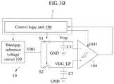More specifically, as shown inFIG. 3C, the system enters the active mode as the T stage shown inFIG. 3C, the reference voltage circuit is in the active mode, the bandgap reference voltage circuit is turned on and outputs the bandgap reference voltage VBG. At this time, the capacitance value of the first capacitor C1 is 1 pF, the capacitance value of the second capacitor C2 is 10 pF, the voltage level Vrep of the first terminal of the first capacitor C1 and the voltage level VBG_LP of the second terminal of the second capacitor C2 are charged to the bandgap reference voltage VBG by the bandgap reference voltage VBG.