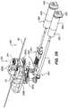 FIG. 22 is a perspective view of a portion of the driver assemblyFIG. 15, the jaw assembly arrangementFIG. 13, and a grip adjustment assembly and loading/unloading assembly used in the catheter feeder ofFIG. 6;