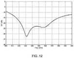 FIG. 12 is a graph showing the value of S11 input reflection coefficient of a waveguide with the impedance matching transition ofFIG. 11.