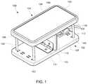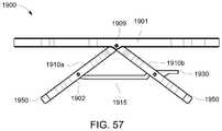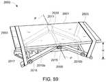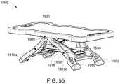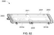 To place thedevice1800,1900 in the closed configuration (see. e.g.,FIG. 54), a user may release thebar1817,1917 from theslot1816,1916 (e.g., by pushing/pulling anend portion1830,1930 of thebrace1815,1915 toward thepedal1801,1901), such that thesupports1810a,1910aand1810b,1910bof thebase1802,1902 fold (via thehinges1809,1909 and1811,1911) flat against thepedal1801,1901. In this manner, to conserve space, thedevice1800,1900 is designed to have a low-profile, which is substantially flat, when thedevice1800,1900 is in the closed configuration. As illustrated, for example, in the embodiment ofFIGS. 59-62 (which is shown as being substantially transparent for ease of illustration), both thesupports2010aand2010band thebrace2015 are configured such that thepedal2001 lays completely flush against thesupports2010aand2010bwhen thedevice2000 is in the closed configuration.