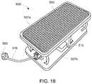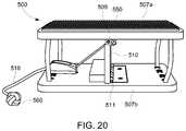 As illustrated inFIGS. 1-12, thepedal101 can be shaped to receive a user's foot, for example, thefoot121 of the user123 (seeFIGS. 6 and 7). In one exemplary embodiment, for example, thepedal101 comprises a substantially flat,rectangular body107 configured to receive thefoot121 of theuser123. In other exemplary embodiments, as illustrated in the embodiments ofFIGS. 22-27, the pedal may comprise a more contoured shape that loosely resembles the shape of a foot. The pedal101 can be sized to accommodate a range of foot and/or shoe sizes. In various exemplary embodiments of the present disclosure, for example, thepedal101 can have a length LP(seeFIG. 3) ranging from about 8 inches to about 15 inches, for example from about 9 inches to about 10 inches, and a width WP(seeFIG. 4) ranging from about 2 inches to about 7 inches, for example, about 4 inches to about 5 inches.