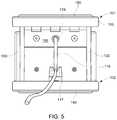 FIG. 27 is a top, front view of the device ofFIG. 25 in a closed configuration and partially inserted into an exemplary pouch in accordance with the present disclosure;