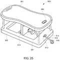 FIG. 25 is a perspective top, front view of another embodiment of a portable exercise device, in an open configuration, in accordance with the present disclosure;