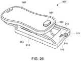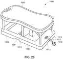 Such components and configurations may serve to minimize the packing profile of thedevice900,1000,1100,1500,1600 while also helping to secure thepedal901,1001,1101,1501,1601 to thebase902,1002,1102,1502,1602 during transport. Also, as above, to provide both protection and containment (e.g., of any dirt or contaminants that thedevice900,1000,1100,1501,1601 may have picked up during use), thedevice900,1000,1100,1501,1601 may also be inserted into astorage sleeve1200 as illustrated, for example, inFIG. 27.