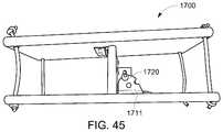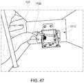 FIG. 47 is an enlarged, partial perspective back view of the device ofFIG. 45 illustrating operation of the self-locking hinge;