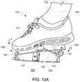 Various exemplary embodiments of the present disclosure, therefore, contemplate rotating the pedal101 in the first and/or second opposite directions F and E to subject the corresponding foot of a user to both plantar flexion motion (e.g., with reference toFIG. 13A, movement of the toes of thefoot121 away from the shin, thereby contracting the calf muscle) and dorsiflexion motion (e.g., with reference toFIG. 13B, movement of the toes of thefoot121 toward the shin, thereby stretching the left calf muscle). In this manner, using the exercise devices in accordance with various exemplary embodiments of the present disclosure can exercise both dorsiflexor and plantar flexor muscle groups, providing full flexion and extension of the ankle joint to increase blood circulation in the lower extremities of the body. In other words, such exercise devices may engage both calf muscle pump and venous foot pump to enhance the return of venous blood from the lower extremities to the heart.