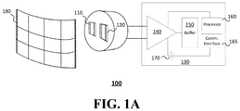 Generally, a PIR sensor can detect infrared radiation emanating from a source within the sensor's field of view (FOV).FIG. 1A shows aPIR sensor100. Thesensor100 can include two radiation-sensitive elements110,120 connected to generate opposite charges when hit by incident radiation. For example,110 can produce a positive charge and120 can produce a negative charge. Thesensor100 includescircuitry130 to transform the charges into a signal voltage and process the signal. For example,circuitry130 can include anamplifier140 to amplify a signal, abuffer150 to store signal samples, aprocessor160 to process the signal samples, acommunications interface165 to transmit data and notifications, and abattery170 to power thesensor100.