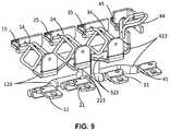 FIG. 11 shows a perspective view of the current measurement device illustrating the use of a brace for holding the current conductors;
