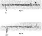 Turning now toFIGS. 9aand 9b, a pressure sensing component is shown comprising a plurality ofpressure sensors207.FIG. 9ashows a pressure sensing component comprising 24independent pressure sensors207 each having a substantially unitary surface, for providing under 24respective keys201 of a digital keyboard.FIG. 9bsimilarly shows a pressure sensing component comprising 24 independent pressure sensors for providing under 24respective keys201 of a digital keyboard, however inFIG. 9beach pressure sensor is divided into two segments (in this case a left and a right segment, in a similar manner as was described in relation toFIG. 8aabove). It will be appreciated that the sensor arrangements ofFIGS. 9aand 9bcan incorporate as many independent pressure sensors as required. The arrangements can also be combined, in other words some pressure sensors may comprise multiple segments whereas some may have a substantially unitary surface. The pressure sensing component comprising the sensors is in this arrangement provided on a PCB, however other arrangements will be apparent to a person skilled in the art.