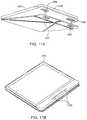 FIG. 11B depicts a view of a protective case with a portion of the protective case folded behind an electronic reading device according to one or more aspects of the disclosed subject matter;
