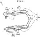 Theinner case34 and theouter case35 are formed in a shape corresponding to theillumination unit20. Theouter case35 is formed withsupport pieces36aand36b, to which thelight guide bodies31aand31band thefirst lenses32aand32bof the firstlight emitting portions21aand21bare attached, in the upper andlower frame portions24 and25 of theillumination unit20. Thesupport pieces36aand36bare shaped to bulge outward in correspondence with thelight guide bodies31aand31b.