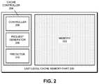 Predictor210 is a functional block that performs operations associated with controlling memory access requests that are sent byrequest generator208 tomemory controller112 based at least in part on predictions of cache memory access requests hitting (or missing) in last-levelcache memory part200.Predictor210 receives information about cache memory access requests received by cache controller204 (e.g., addresses of data, etc.) and a prediction mechanism inpredictor210 determines a likelihood that the cache memory access requests will hit (or miss) inmemory202. Based on the likelihood,predictor210 causesrequest generator208 to send (or not send) specified speculative types of memory access requests tomemory controller112 as described herein.