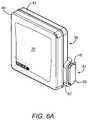 As an alternative, thefixture configuration module32 may be configured as illustrated inFIGS. 6A and 6B. In this configuration, thefixture configuration module32 may be attached to theelectronics housing26 of thelight fixture10 in a secure fashion and may subsequently be released from theelectronics housing26 without the need for bolts. In particular, thefixture configuration module32 may have a two-part module housing38, which is formed from afront housing section40 and arear housing section42. As will be described further below, the electronics for thefixture configuration module32 are housed within themodule housing38.