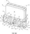 The rear of themodule housing38 illustrated in the example ofFIG. 6B includes two snap-lock connectors44 that are biased to opposing sides of themodule housing38. Each snap-lock connector44 includes afixture locking member46, aspring member48, abutton member50, and twohousing locking members52. Each of thefixture locking member46, thespring member48, thebutton member50, and thehousing locking members52 essentially extend from acentral body portion54 in the illustrated embodiment.