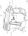 With references toFIGS. 23-27,removable tray1410 includes a pair of rigidengaging projections1440 provided on afront end1412, and a pair of movableengaging projections1450 extending upwardly from arear end1414 and resiliently biased towards the rear end. To separate the tray from themain body1010, actuating (e.g. depressing)button1460 results in forward movement of the movableengaging projections1450, resulting in their disengagement from correspondingrecesses1455 in the main body, allowing therearward end1414 oftray1410 to be pivoted downwardly fromhandle1020. Oncetray1410 has been so pivoted, it may be translated rearwardly to remove engagingprojections1440 from corresponding recesses1445 in the main body. To connect thetray1410 to themain body1010, the process may be generally reversed. That is,projections1440 may be inserted into recesses1445, andtray1410 subsequently pivoted upwardly until engagingprojections1450 are secured inrecesses1455. It will be appreciated that any other constructions may be used to removablysecure tray1410 in position on the main body.