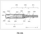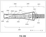 In one embodiment, an inner surface of thewaveguide2622 can be constructed from a metallic material or other materials that reflect electromagnetic waves and thereby enables thewaveguide2622 to be configured to guide the electromagnetic wave towards thecore2628. In one embodiment, thecore2628 can comprise a dielectric core (e.g., as described herein) that extends to, or in proximity of, the inner surface of thewaveguide2622. In another embodiment, the dielectric core can be surrounded by cladding (such as shown inFIG. 18A), whereby the cladding extends to the inner surface of thewaveguide2622. In yet other embodiments, thecore2628 can comprise an insulated conductor, where the insulation extends to the inner surface of thewaveguide2622. In this embodiment, the insulated conductor can be a power line, a coaxial cable, or other types of insulated conductors. In one example, the tapered outer shape may extend to the diameter of the metallic wire. In another example, the tapered outer shape may extend to and include tapering of the metallic wire. In yet another example, the metallic wire may or may not continue beyond thetip2675.