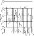 FIG. 5 is a schematic packet flow diagram of traffic at a scalable network node corresponding to a home NodeB gateway usage pattern, in accordance with some embodiments. Traffic is shown as arrows, but the arrows may or may not correspond to any particular packet, in the data flow, in some embodiments; rather, the arrows are illustrative in nature.Load balancer L501, controlplane function C1502, controlplane function C2503, dataplane function D1504, and dataplane function D2505 are shown. At506, data is received from a CWS (e.g., an eNB or HeNB or HNB); it is encrypted. The data is forwarded507 by the load balancer to data plane function D2, which decrypts it, determines that it is Iuh or SON or other signaling traffic, and sends it508 to controlplane function C2503. Controlplane function C2503 includes ingress andcore handling module509 andUE manager function510. These functions interact with the data and generate a control plane message which is sent511 to controlplane node C1502 for egress.