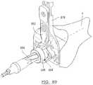 The cuttingblock812 can then be removed from the distal femur F while leaving thereamer956 in place (FIG. 86). Augmenttrials844 can then be coupled to the back side of the femoral offsettemplate876 using a desiredhole880. Next, the universalrevision alignment member882 can be coupled to top side of the femoral template876 (FIG. 88). The offsetbushing838 can be inserted into thepocket884. Thereamer bit904 can be inserted through thepassage804 in the offsetbushing838 and the assembly can be dropped onto the distal femur F. The offsetbushing838 can then be rotated to thealignment number842 noted from above. The femoral offsettemplate876 can be secured to the distal femur F. The offsetbushing838 can then be removed from thepocket884. The implantboss reamer bushing896 can then be inserted into the pocket884 (FIG. 89). Thereamer bit904 can be directed through the implantboss reamer bushing896 to ream an implant boss969 (FIGS. 90 and 92).