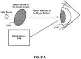 FIG. 31A illustrates a technique for assessing dry eye and corneal irregularities including projecting a pattern onto the corneal surface and imaging the corneal surface reflecting the pattern, in accordance with one or more embodiments.