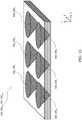 FIGS. 9 and 10 are similar diagrams each illustrating an example of a stacking procedure of several ceramic-deposited substrates.FIG. 9 shows stacking of the eight ceramic-deposited substrates shown inFIGS. 1 through 8.FIG. 10 shows the stacking arrangement ofFIG. 9 plus a blank substrate being stacked atop the ceramic-deposited substrate shown inFIG. 1.