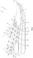 FIG. 3B illustrates a top view of the toe cage and instep of the example embodiment of the article of footwear illustrated inFIG. 1A, the top view showing the positioning of the elongate members of the eyelets in the forefoot and midfoot sections of the article of footwear.