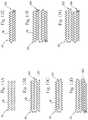 Measurements are then made from the processed topography images to yield the spatial parameters of elevation differential (E), and transition region width (T). These measurements are achieved by using the instrument software to draw straight line regions of interest within a topography image of the sample's x-y surface, and to then generate height profile plots along these straight lines. The straight line regions of interest are drawn such that they sample several different locations within each image, crossing continuous regions and the center of adjacent discrete zones. The lines are drawn so that they bisect each transition region between continuous and discrete zones at an angle perpendicular to the long axis of the transition region, as shown inFIG. 20. As shown inFIG. 20, a series of straight line regions of interest, drawn across the continuous and discrete zones, bisecting each transition region at an angle perpendicular to the long axis of the transition region. The parameters (E) and (T) are then measured from the height profile plots generated from these straight line regions of interest.