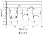 FIG. 22 depicts a height profile plot along a straight line region of interest, drawn through a topography image, to show several transition region widths in accordance with the present disclosure; and