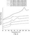 FIG. 9 is a plot of relative heat flow as a function of temperature from DSC of a series of copolyesters according to embodiments of the invention.