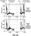 FIGS. 9A-9B show graphical data relating to glucose sensor responses to interfering species (e.g. acetaminophen).FIG. 9A shows a graph of in vivo data obtained from pigs with conventional sensors (lower panel) as well as sensors including microarray electrodes (upper panel). This data shows that sensors designed to include microarray electrodes exhibit a lower response to the interfering compound acetaminophen.FIG. 9B shows a graph of experimental data showing an in vitro interference response in microarray as compared to rectangular electrodes. This data shows that sensors with microarray electrodes exhibit a better (i.e. smaller percentage change in Isig) response to interferences than rectangular electrodes.