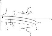 Such a situation is shown inFIG. 1 that is shown in the coordinate system of the road. The road is shown as a two-lane road with alane1 that is demarcated by a verge oredge boundary2 and acenter line3. The middle4 of thelane1 extends through the origin of coordinates and tangentially to the x-axis. The verge oredge boundary2 is represented by a clothoid segment. The end of said clothoid segment is denoted byreference numeral7 that may also represent a point of transition to the next road segment.