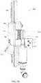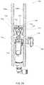 In an optional embodiment, whendoor706 is open, actuation ofbutton716 by a user or activation ofactuator717 by a controller causescarriage723 andspreader722 to move into a non-occluding position, and a retaining element or assembly allows the non-occluding position to be held without further force being applied either by the user or by theactuator717. In an exemplary embodiment shown inFIG. 56, thecarriage723 may incorporate alatching pin726 to cooperate with a slot or hole in aretention member718. Theretention member718 includes asurface727 positioned to be contacted bypins738 located on the inside ofdoor706 when it is closed (see, e.g.,FIGS. 51 and 52). Throughholes739 allowpins738 to contact a portion ofretention member718 to displace it in a rearward direction. In the illustrated embodiment, pins738 contactfront plate727 ofretention member718.Retention member718 also includes a surface having a slot orhole729 positioned to receive the head of alatching pin726, which in the illustrated embodiment comprises ahorizontal plate728 defining a receivingportion729.Retention member718 is arranged to slide within grooves or guides of the frame701 (not shown) in response to contact by thepins738 when thedoor706 is closed or opened (see, e.g.FIG. 51). Aspring730 mounted on theframe701 may be biased to urge theretention member718 forward to a stop feature (not shown) on theframe701 so that opening thedoor706 allows theretention member718 to slide forward, re-aligning the receivingportion729 in relation to thelatching pin726. When thedoor706 is closed (seeFIG. 50 or 51), thepins738 on thedoor706 press against thefront plate727 which compresses thespring730 such that the receivingportion729 of thehorizontal plate728 is positioned directly over the latchingpin726. Upon alignment of the receivingportion729 with the latchingpin726, the area of the receivingportion729 is large enough to allow thelatching pin726 to be released by theretention member718, thereby allowing thecarriage723 to be subject to the spring force of themain spring745 in theactuator717. If pneumatic pressure is not then being applied to theactuator717, thecarriage723 is then free to move into an occluding position. Theretention member718 in the disabled state (i.e., inoperative state) allows the latchingpin726 to move freely through the receivingportion729 as thecarriage723 moves between the fully extended position and the fully retracted position.