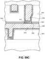 FIGS. 57A-57C illustrate cross-section views of individual interconnect lines having various liner and conductive capping structural arrangements, in accordance with an embodiment of the present disclosure.