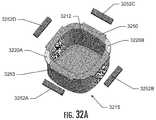 FIG. 32B illustrates a perspective view of a cartridge according to an example implementation of the present disclosure, andFIG. 32C illustrates a bottom view of a cartridge according to an example implementation of the present disclosure. In particular,FIGS. 32B and 32C illustrate acartridge3100 that includes atank3102 that is defined by anouter tank wall3104 that includes aproximal end3106 and adistal end3108, which is closed. In many aspects, thecartridge3100 may have a similar configuration and may include similar components (and similar configuration and component variations) as that of thecartridge300 described above, which will not be repeated here. As such, reference is made to the pertinent discussions of these configurations and components (and configuration and component variations).