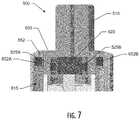 Thecartridge900 of the depicted implementation includes amouthpiece910 that is defined by anouter mouthpiece wall912 that includes aproximal end914 with anexit portal915 defined therein, and adistal end916 that engages theproximal end906 of thetank902. In the depicted implementation, themouthpiece wall912 includes aflange950 positioned between theproximal end914 and thedistal end916 thereof. In the depicted implementation, theflange950 of thecartridge900 also includes ametal ring952 that defines anangled surface960. In the depicted implementation, themetal ring952 is affixed to the bottom of theflange950 of themouthpiece910 via an adhesive, although in other implementations other methods of attachment of possible, including, for example, via an insert molding process. In various implementations, themetal ring952 may comprise any material configured to be attracted by a magnet, such as various ferromagnetic materials, including, but not limited, to iron, nickel, cobalt, alloys such as steel, and/or any combination thereof.