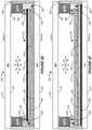 FIG. 11F can also be used to illustrate another embodiment. For example, rather than1108 being a dock for a carrier (controller), it can be a user interface, e.g. a control pad, e.g. a touch pad, key pad or touch screen display (and thus thin, for example) and thewiring1106 is used to connect the user interface to a controller in the secondary seal. This is akin to the embodiment where the carrier contains the controller circuitry and a user control interface, but moving the controller circuitry between the glass, e.g. in the secondary seal and keeping the user interface on the glass. Thus wiring1106 would connect the bus bars, antennas, and other features as described above between the panes, but also the controller circuitry, which is also between the panes in this example, to the control pad. The user interface may be affixed, e.g. with an adhesive, and may be removable/replaceable. The user interface may be very thin, having e.g. only keypad connections toflexible circuit1106 or the control pad may be a digital display (which can also be thin and e.g. flexible). The control interface may be at least partially transparent. In one embodiment, the user control interface andcircuit1106 are a single component. For example, anadhesive sealant1105 on the back of1106 (as described above) may also be on the back of the user control interface with e.g. a protective backing for a “peel and stick” form factor. For example, during fabrication, appropriate electrical contacts to the bus bars, antennae, controller and other components between the panes are made to a local area on S2 and/or S3 as appropriate. When the lites are brought together during IGU formation, the local areas, if one on both S2 and S3 for example, are registered. Then the user interface is peeled and stuck onto the glass, e.g. starting from S3, across the spacer, onto S2, around the edge ofpane1100band then onto S4. In this way a convergent (and thus efficient) fabrication process is realized.