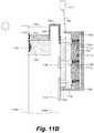 FIG. 11B presents an embodiment similar to the one shown inFIG. 11A, and only the two primary differences will be described. InFIG. 11B,cable1127 connects directly to thecarrier1108 rather than to the base1107 (though in an alternative embodiment, it may be configured as inFIG. 11A). Thus, there is no need for any connections (such as1125 and1126 ofFIG. 11A) for bringing power and/or communication information from thebase1107 to thecarrier1108. In this example, thebase1107 may be unpowered, with power being transferred directly from thecarrier1108 to the electrical connection1120 (and tocomponents1115 and1116) through the pogo pins1110a-c. In another embodiment, one or more of the pogo pins1110a-cmay terminate on top of thebase1107 instead of going through thebase1107. Thebase1107 may then transfer power, via any available electrical connections, to the components below thebase1107. In one example, thebase1107 includes conductive traces, each trace electrically connecting (a) the point at which a pogo pin1110a-ctouches thebase1107 and (b) the component below thebase1107 that is powered by the associated pogo pin (e.g.,components1115 and1116, andelectrical connections1106 or1120). Alternatively or in addition, the base may include electrical connections that pass through the base, rather than being provided only on a surface of the base.