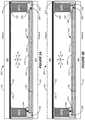 FIG. 11D presents an example of a piece of flexible tape that has conductive lines; it may in a sense be viewed as a flexible printed circuit. The conductive tape is shown in the shape it would have if used for theelectrical connection1106 shown inFIG. 11A. The tape wraps around theinboard lite1100b, extends over the outer perimeter of thespacer1101, and rests on S2 of the outboard lite1100a, where it can provide a powered connection to the bus bars/bus bar leads (not shown), with one lead for each bus bar. Similarly, the flexible tape can be used to provide electrical connections to antenna components such as a ground plane and one or more antenna structures. In some embodiments when used for connection with an antenna structure, the tape may include three conductors, rather than the two shown inFIG. 11D. For example, as depicted inFIG. 11G, acentral conductor1191 is used for signal communication, and theouter conductors1193 are grounded to prevent the central conductor from radiating. In general, the tape can be deliver power and/or communications between any surfaces of an IGU (e.g., S4-S3, S4-S2, S4-S1, S3-S1, S2-S1, and S3-S2). The individual antenna elements are connected to an antenna controller (receiver and/or transmitter) through the connections. In certain embodiments, the flexible tape includes an adhesive surface allowing it adhere to the IGU structures it traverses.