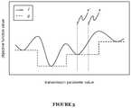 In one embodiment, the original objective function ƒ is basined to generate a modified objective function g, wherein the objective function values are replaced by the minimum value of the basin in which they sit (or analogously, for an objective function to be maximized, the maximum value of the hill on which they sit), such as shown inFIG. 3. In this embodiment, evaluating the modified objective function at a point x (e.g., at a set of candidate transmission parameter values) can include performing a local optimum search starting at the point, using the original objective function (e.g., as described above regarding S230), wherein the value of the modified objective function at the point is equal to the value of the original objective function at the local minimum x′: g(x)=ƒ(x′).