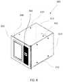 Referring toFIGS. 11 and 12, a detailed top view of a portion ahinge mount222 is shown, according to a non-limiting embodiment.FIG. 11 shows thehinge mount222 when thefront door211 is open.FIG. 12 shows thehinge mount222 when thefront door211 is closed. Thedoor hinge217 passes through thehinge slot218 and fixed to theside plate214 using bolts and nuts. Theside plate brackets223 are inserted into thecassette slide clip169, which is a part of theside wall160.