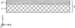 The average of fiber two-dimensional orientation angles on the X-Y plane is measured in steps I and II. As described above, the X axis, the Y axis and the Z axis are mutually orthogonal, the X-Y plane is in the base material plane, and the Z axis extends in the thickness direction of the base material.