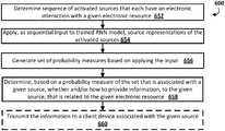 Atblock652, the system determines a sequence of activated sources that each have an electronic interaction with a given electronic resource.