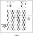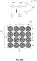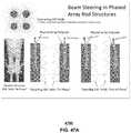 FIG. 47E illustrates the structural differences between a 4×4 linear grid versus a 4×4 hexagonal grid.FIG. 47E further illustrates how a large hexagonal array of dielectric polyrod antennas can be constructed by combining 4×4 hexagonal grids.FIG. 47F illustrates that a 1×7 hexagonal grid can be used to generate near-field beam patterns that can be rotated by 30 degrees by selectively choosing adjacent cells in a horizontal plane.FIG. 47F further shows how 1×7 hexagonal grids can be combined (e.g., a 20 element array), and how with such combinations, various shapes of near-field beam patterns can be generated by selectively activating particular cells of a hexagonal dielectric polyrod array.FIG. 47G further illustrates how a large hexagonal dielectric polyrod array can be used to generate different near-field beam pattern configurations by selective activation and synchronization of cells in the hexagonal dielectric polyrod array, while other cells are inactive for transmission purposes, but may be active for reception of wireless signals.