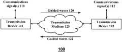 FIG. 1 is a block diagram illustrating an example, non-limiting embodiment of a guided-wave communications system in accordance with various aspects described herein.