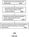 At4404, a first group of transmitters can generate first electromagnetic waves representative of or otherwise associated with the communications and at4406 a second group of transmitters can generate second electromagnetic waves representative of or otherwise associated with the communications. In one embodiment, the first and second electromagnetic waves can propagate and be guided by dielectric cores without requiring an electrical return path, where each of the dielectric cores is connected with one of the transmitters and is also connected with a corresponding antenna of an antenna array to enable beam steering.