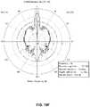 FIGS. 19E and 19F are block diagrams illustrating example, non-limiting embodiments of a dielectric antenna coupled to a lens with ridges and corresponding gain and field intensity plots in accordance with various aspects described herein.